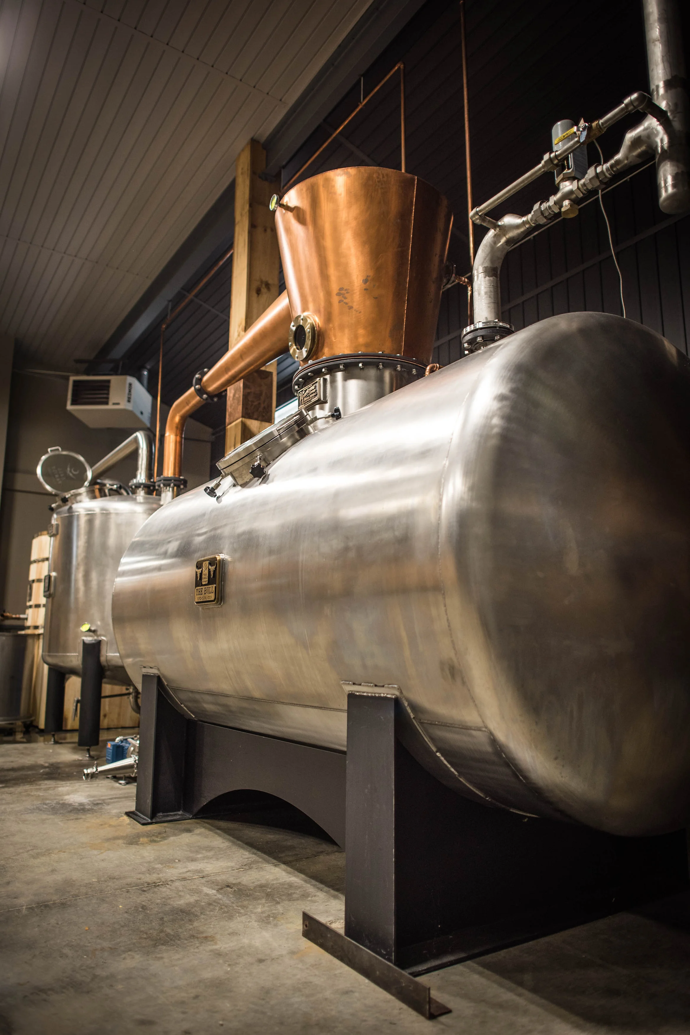 "The Bull" - Our custom designed 2100 gallon direct steam injection still. Designed by master distiller, Brian Call - it is the largest direct steam injection still in North Carolina. Built in 2015 by Vendome Copper & Brass Works.